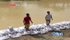 广东普宁灾区洪水退去 民众抢修加固河堤
