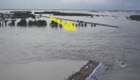 航拍黑龙江溃堤现场 大量江水涌向农田