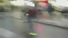 实拍男子创新“鬼步舞” 大踏步后移似穿滑轮