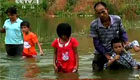 广西乘竹筏上学遭禁 家长改带孩子趟水