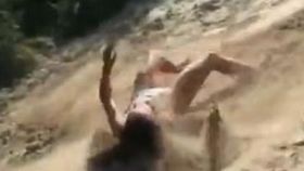 搞笑:美女玩滑沙被摔惨了