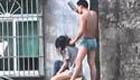 半裸男屋顶劫女孩 逼其脱衣