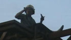 实拍:男子高架上手舞足蹈 耍疯抢走消防员帽子