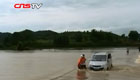 暴雨致江西宜春公路成河 面包车载6人险被冲走