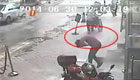 实拍高楼坠钢化玻璃砸中路人 腾起一片血雾