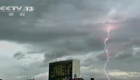 美国暴风雨袭纽约 闪电击中世贸大楼