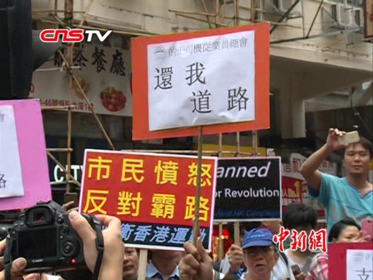 现场:的哥持令拆路障遭强阻