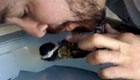 男子发现鸭子被冻湖面 跳湖破冰救援