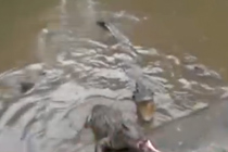 现场:窃贼被追冲入鳄鱼池 被民警救回