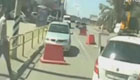 两司机斗气搬隔离桩挡路