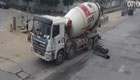 男子遇车祸摔进搅拌车底