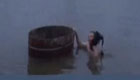 男子发现鸭子被冻湖面 跳湖破冰救援