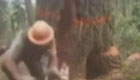 大树突然炸裂 伐木工连滚带爬逃跑