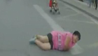 女子带宝宝假摔玩“碰瓷”