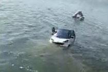女游客开电动观光车冲进洱海