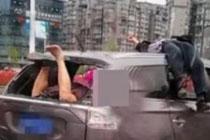 摩托车追尾轿车:1人撞进后备箱 1人飞上车顶