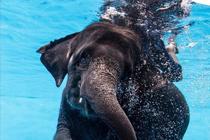 泰国大象与象夫玩潜水