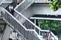 走路玩手机从天桥滚落