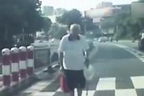老人被礼让后脱帽致谢