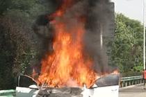 私家车高速上自燃 绿化洒水车路过施救