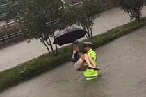 暴雨围车 交警“公主抱”救出女司机