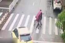 司机横车挡住车流 帮助老太过马路