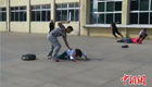 【解说】记者了解到,新疆喀什地区麦盖提县当地群众也参与到反恐行动中,7名维吾尔族群众为县公安局捐赠7个盾牌助民警反恐,还赠送了一批办公用品。