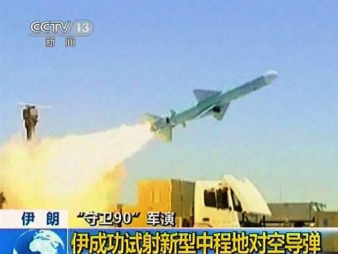 1日,伊朗海军还军演中试射了一枚中程地对空导弹。