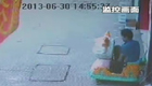 监控实拍蟊贼偷路边"摇摇马"硬币