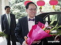 图:曾荫权宣誓就职后喜气洋洋走出人民大会堂