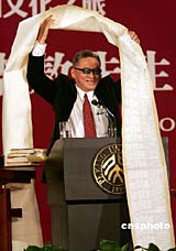 李敖重返上海母校 喜获校方赠送的“四大礼”