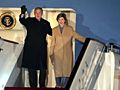 图:美国总统布什夫妇走下舷梯