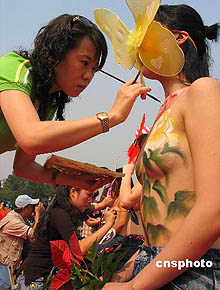 南京中秋上演人体彩绘