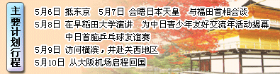 5月6日-10日,中国国家主席胡锦涛对日本进行了为期五天的国事访问。[详细]