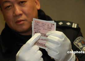 假票主要有“回头票”、“补、涂改票”、“整版假票”三种。回头票一般票面较旧,且已被剪口;补、涂改票由于刮掉了一部分纤维,颜色会有些发白,整个票面颜色不统一;而假票票面“中国铁路”标志以及背面的水印较为模糊,用手轻揉票面文字及数字时,油墨即会沾在手上。