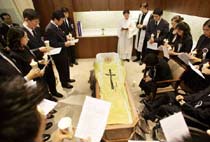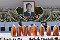 图:朝鲜吊唁团在金大中灵堂进行吊唁