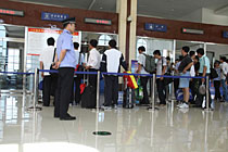图:伊春机场乘客在办理登机手续