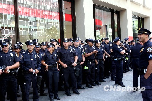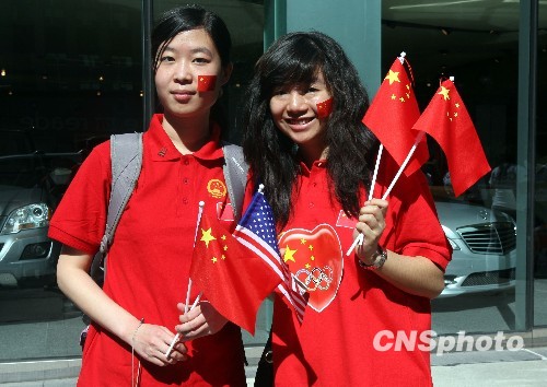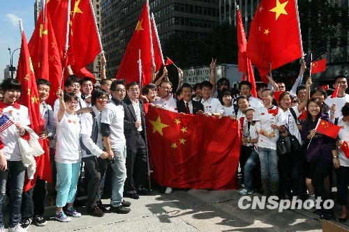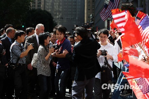 图:旅美中国学生纽约街头欢迎胡锦涛访美