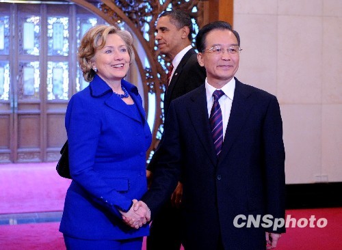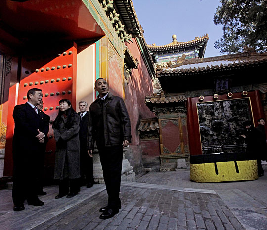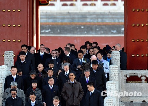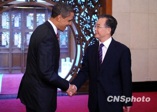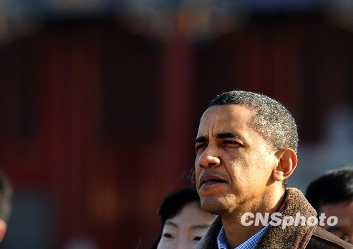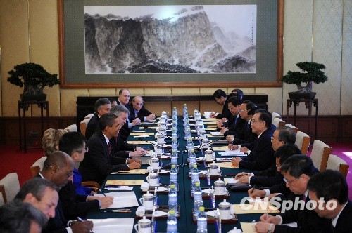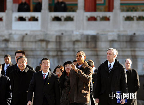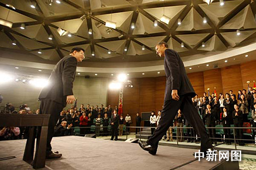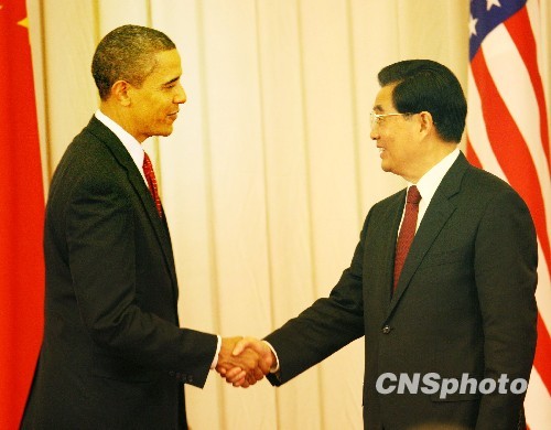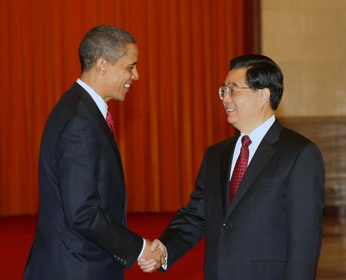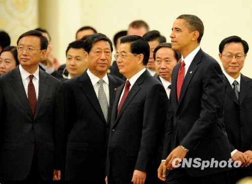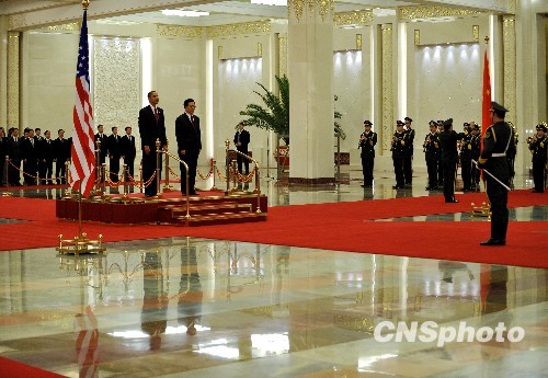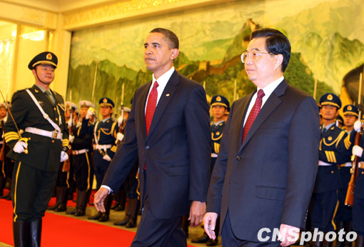 图:胡锦涛举行仪式欢迎美国总统奥巴马访华