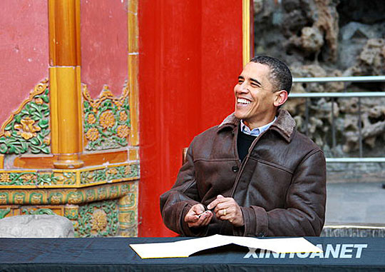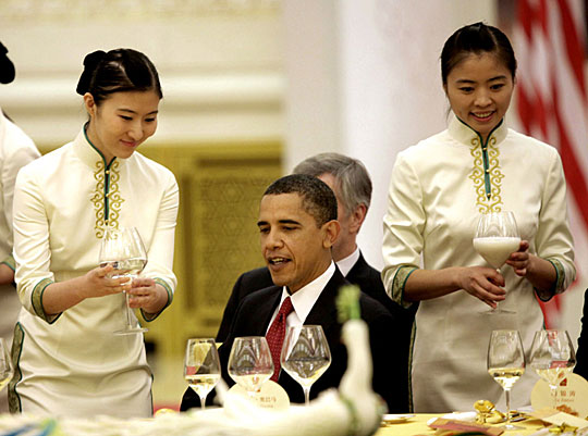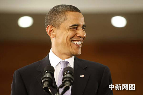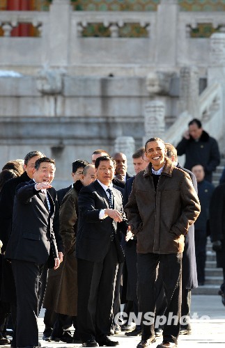 图:奥巴马轻松出席胡锦涛主席欢迎宴会