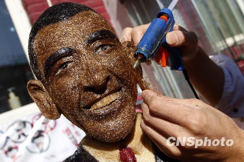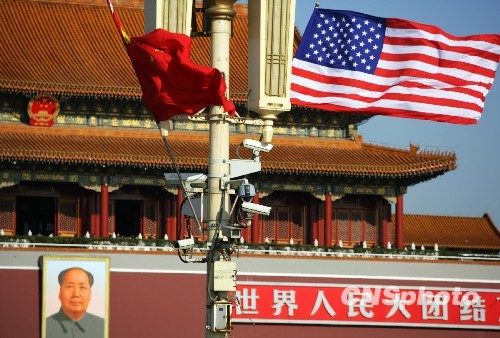 图:中美国旗飘扬欢迎奥巴马访华(2)