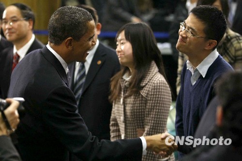 组图:奥巴马在上海科技馆与青年学生对话(2)