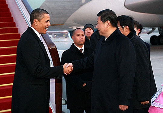 图:奥巴马飞抵北京 习近平前往机场迎接