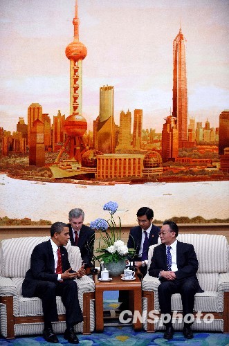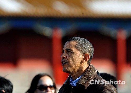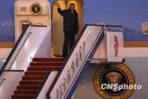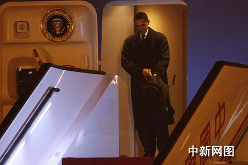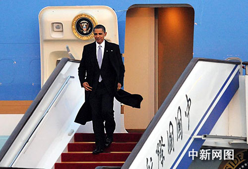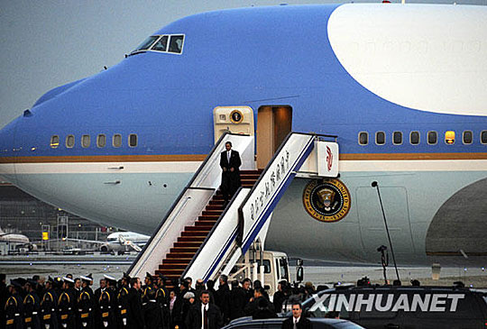图:美国总统奥巴马乘“空军一号”抵达上海