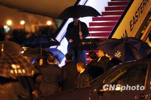 图:美国总统奥巴马抵达上海 记者雨中等候