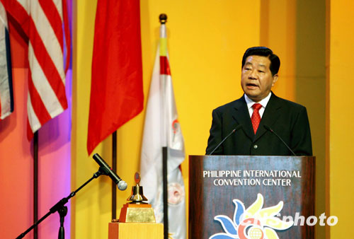 图:贾庆林在菲律宾出席世界华商大会开幕式