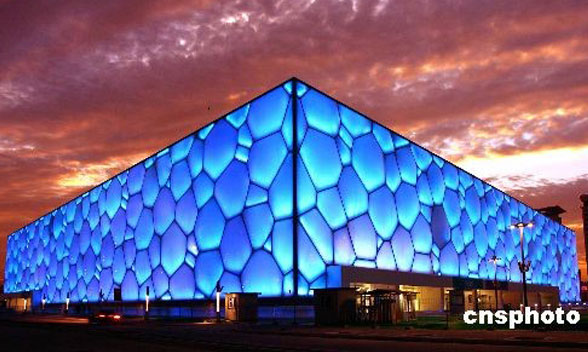 国家游泳中心又被称为“水立方”(Water Cube),位于北京奥林匹克公园内,是北京为2008年夏季奥运会修建的主游泳馆,也是2008年北京奥运会标志性建筑物之一。它的设计方案,是经全球设计竞赛产生的“水的立方”([H2O]3)方案。2003年12月24日开工,在2008年1月28日竣工。其与国家体育场(俗称鸟巢)分列于北京城市中轴线北端的两侧,共同形成相对完整的北京历史文化名城形象。做为北京2008年夏季奥运会修建的主游泳馆,与国家体育场“鸟巢”同时被称为2008年北京奥运会标志性建筑物。