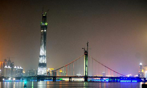 广州电视观光塔(又称广州塔、广州新电视塔),建于广州市海珠区赤岗塔附近地面,距离珠江南岸125米,与海心沙岛及广州新电视塔夜景珠江新城隔江相望。是一座以观光旅游为主,具有广播电视发射、文化娱乐和城市窗口功能的大型城市基础设施,将为2010年在广州召开的第十六届亚洲运动会提供转播服务。该塔仍然在建,由上海建工集团负责施工,预计2009年9月竣工。竣工后的广州电视观光塔整体高度达到610米,将取代加拿大的西恩塔成为世界第一高塔,也将成为广州的新地标。其中塔身主体454米,天线桅杆156米。