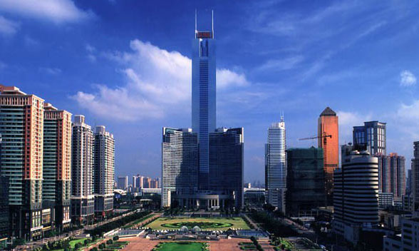 中信广场位于广州市商业、金融业繁华的天河北路,占地2.3万平方米,总建筑面积29万平方米,由一幢80层的主楼和两幢38层的副楼组成,1997年建成时为当时中国的最高建筑,现在仍是华南地区第一高楼,也是世界上最高的混凝土大厦,其抗震能力比“9·11”事件中被撞毁的纽约世贸中心大厦强得多。它面向天河体育中心,背后是广州火车东站和广州地铁总站,地理位置优越,拥有一流的办公商住环境,落成不久即身价百倍,成为广州市屈指可数的黄金商业楼盘。