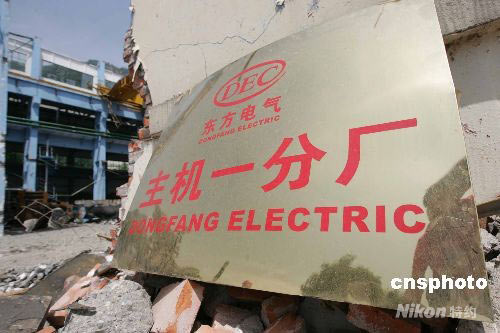 图:东方汽轮机厂清理灾后厂房准备重建